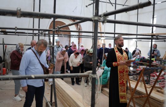 После праздничной Литургии на Успение Пресвятой Богородицы в Казанском храме, прихожане и жители деревни Андреевское собрались в строящемся храме в честь апостола Андрея Первозванного на совместную молитву. Молебен совершил настоятель Казанского храма иерей Димитрий Березин. В завершение богослужения отец Дмитрий окропил всех молящихся святой водой, затем рассказал о ходе строительства храма и о ближайших планах, связанных с возведением храма.