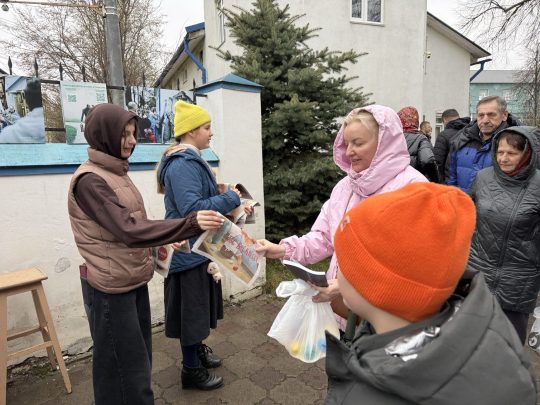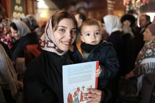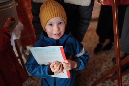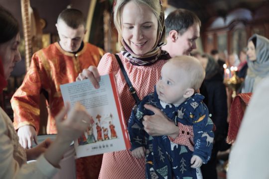 12 апреля на отпусте ночного и утреннего пасхальных богослужений всем присутствующим в храме детям от прихода были вручены в подарок книги «Воскресение Христово» Е. В. Тростниковой.